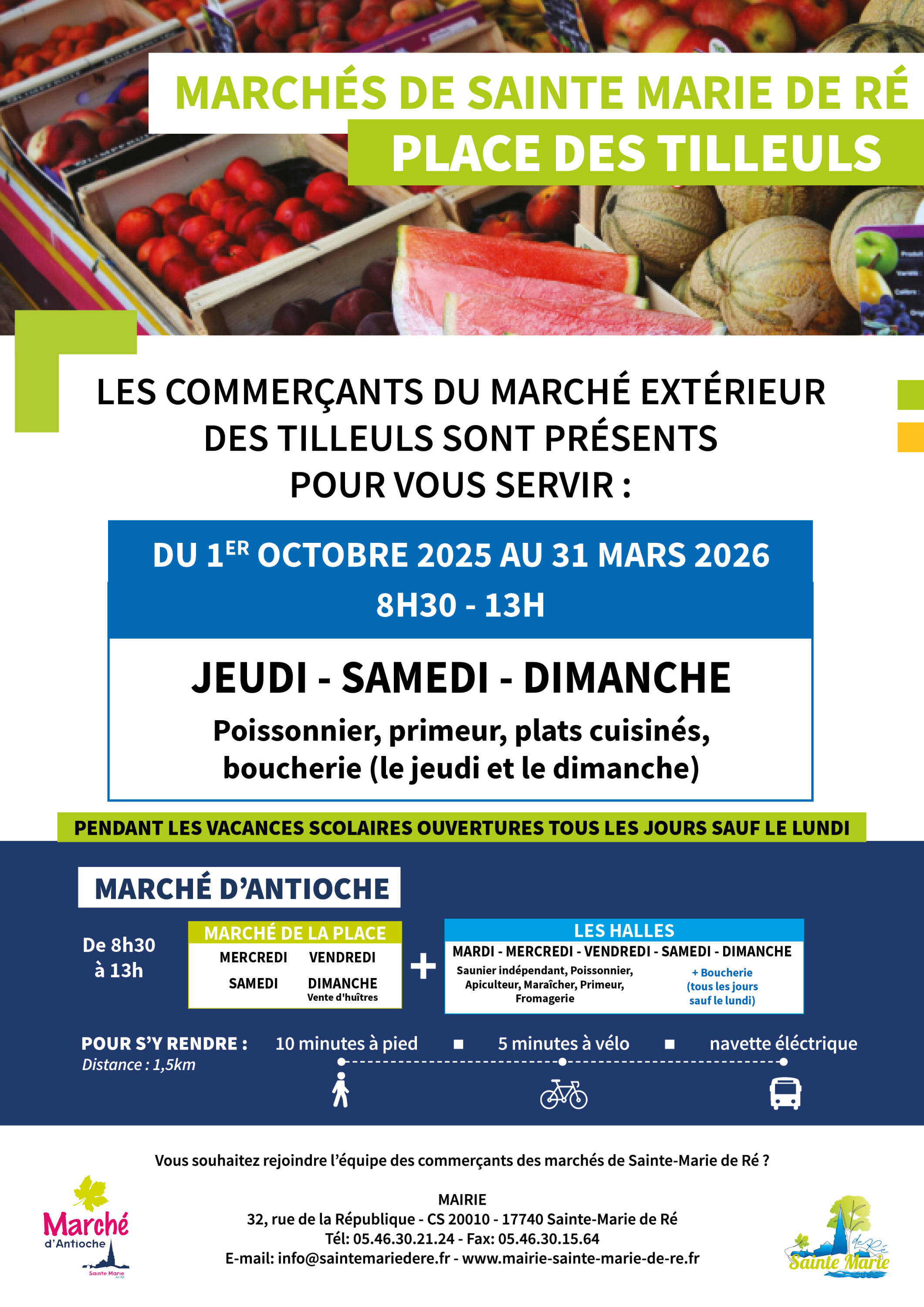 Find the market on the Place des Tilleuls, in La Noue in Sainte-Marie-de-Ré