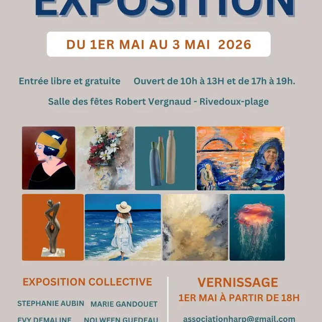 From 1 to 3 May 2026, from 10am to 1pm and from 5pm to 7pm: a group exhibition by the Horizons Artistiques association of Rivedoux-Plage. Opening night on 1 May from 6pm.