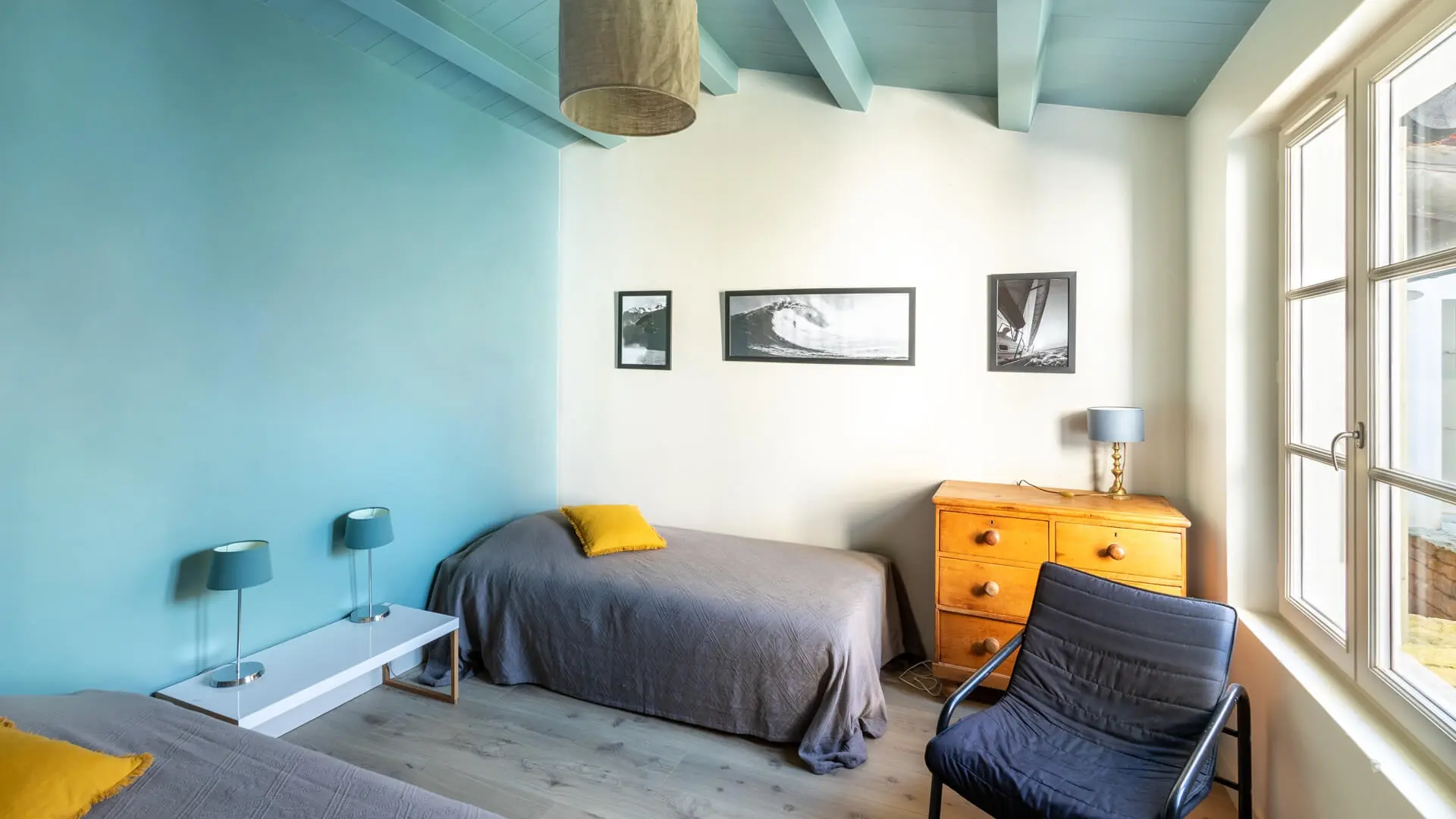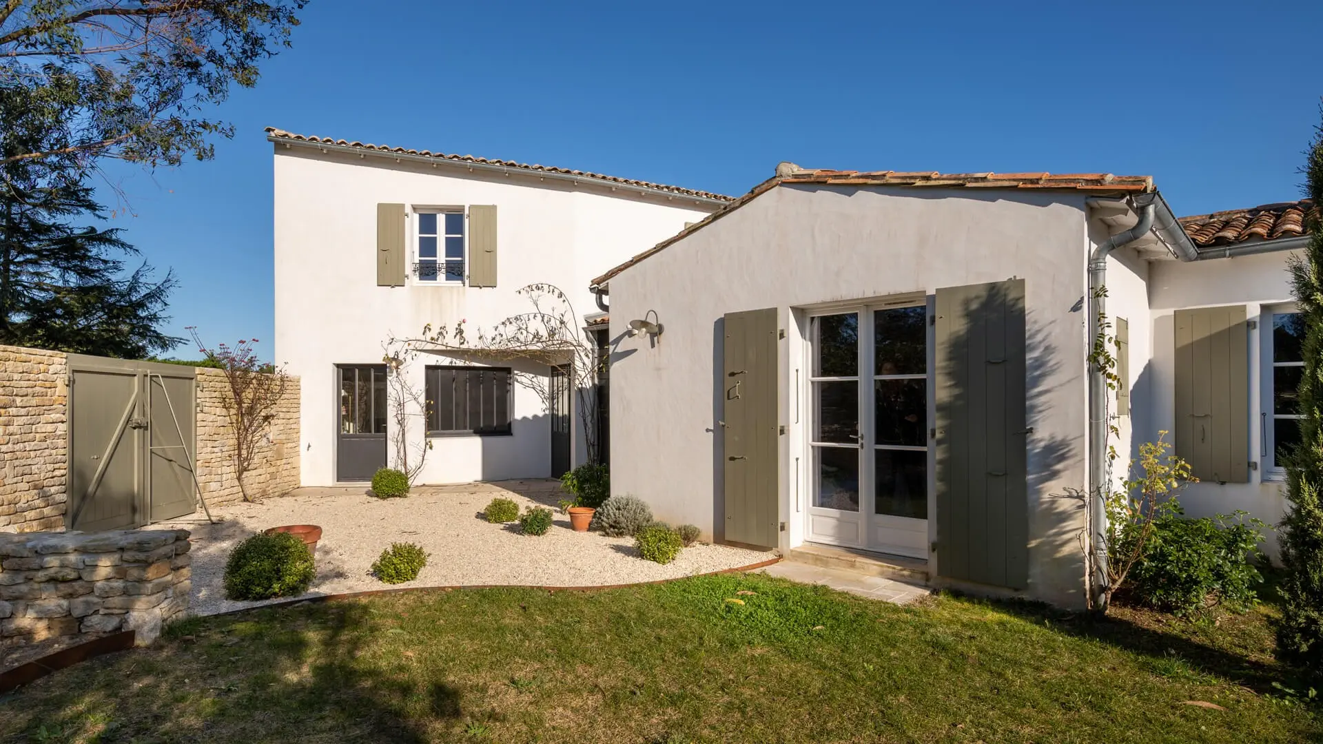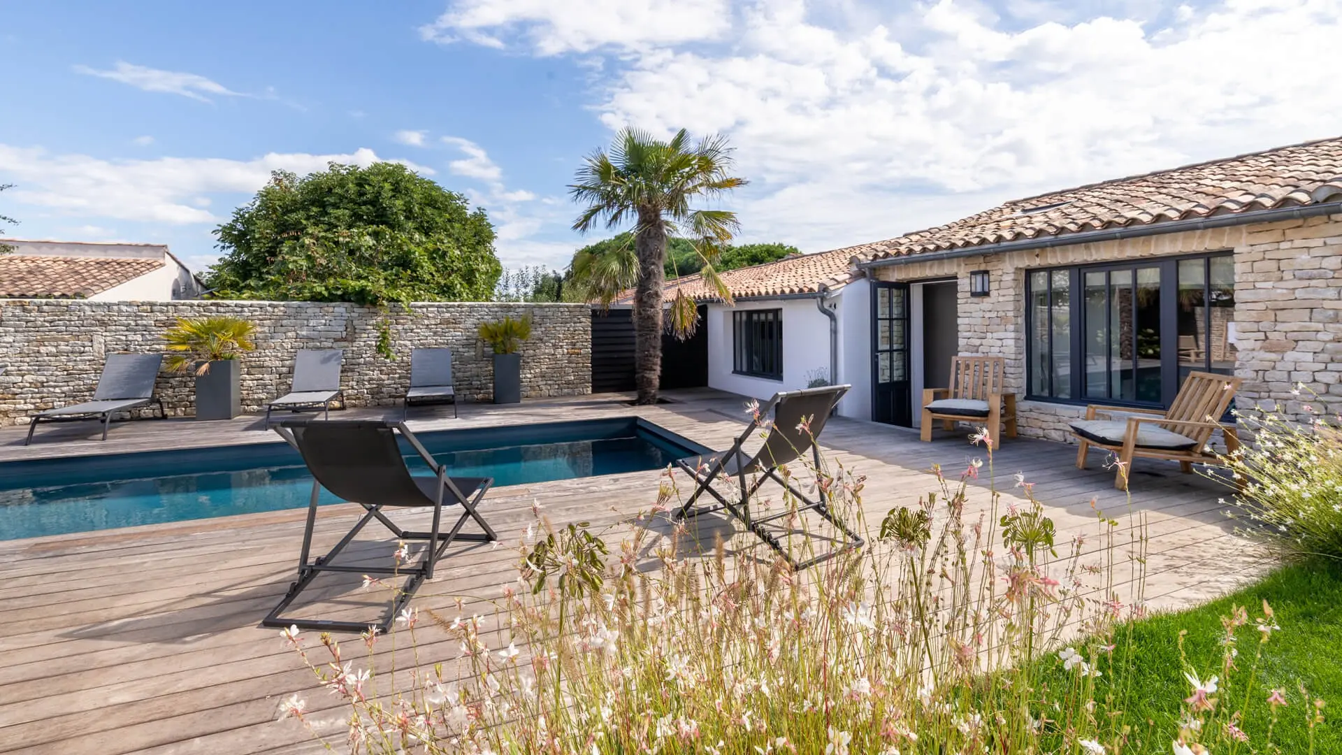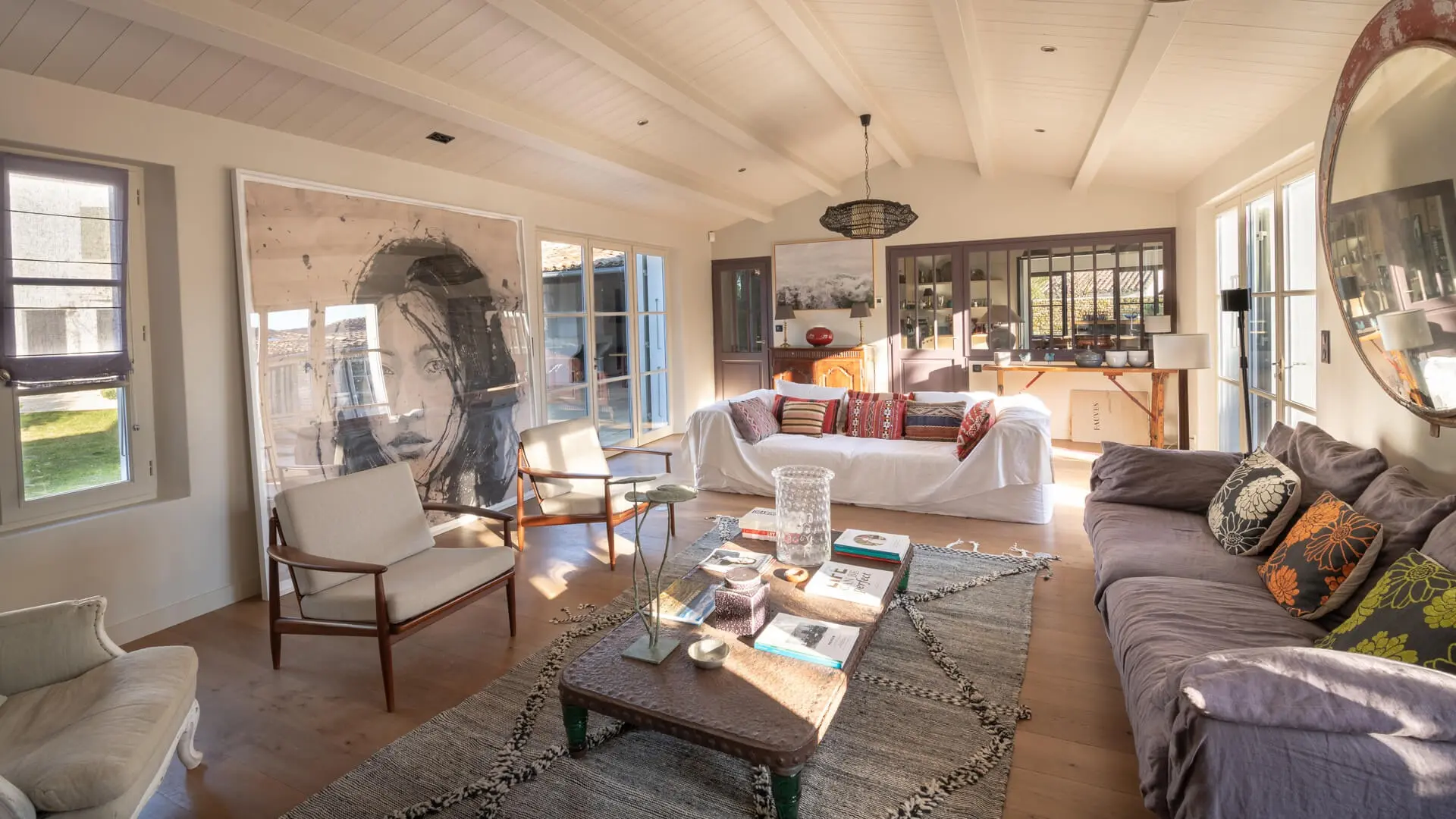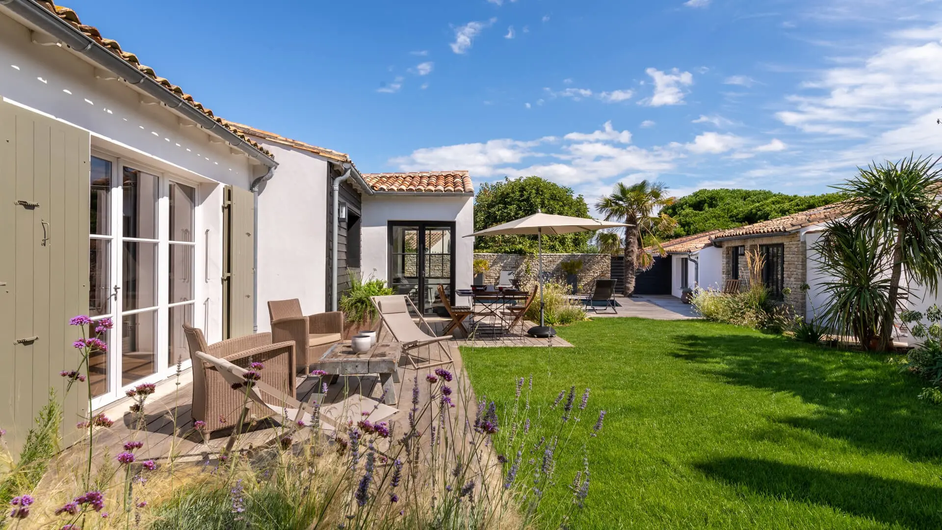 La Villa Phénix ofrece 260 m² de generoso espacio interior, decorado en tonos claros y oscuros para crear un ambiente elegante y muy relajado, a imagen de la isla de Ré.