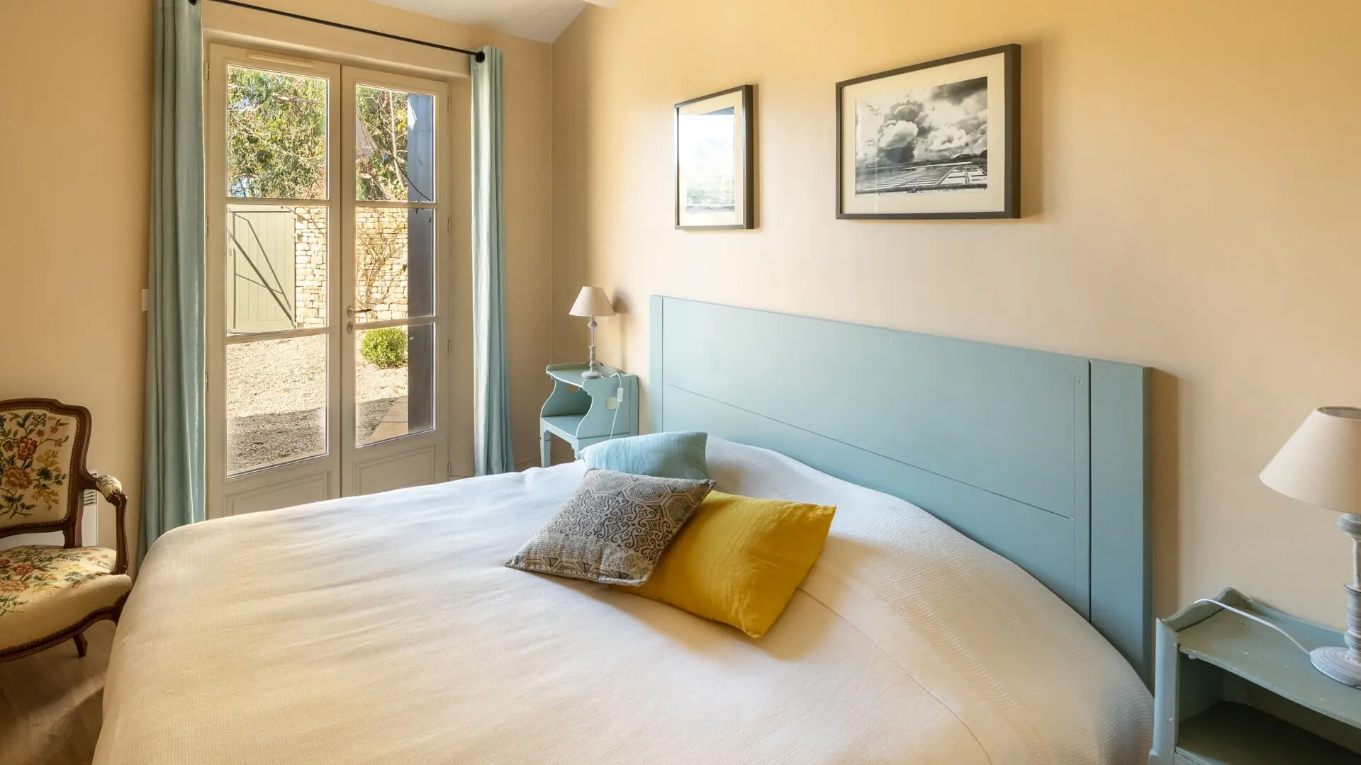 - Habitación 1 - Habitación principal (Anexo 1): Habitación, planta baja, acceso directo al jardín, en otro edificio. La habitación cuenta con una cama doble de 160 cm y ducha.