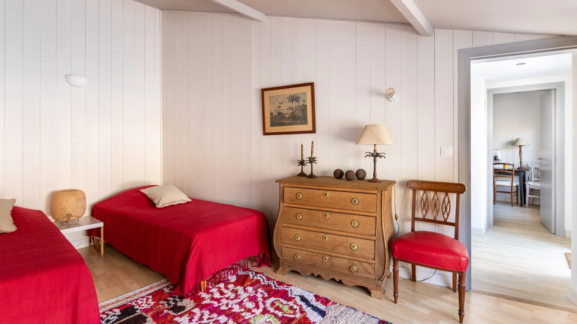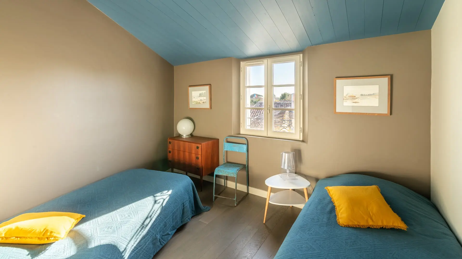 - Habitación 2 - Habitación infantil (Anexo 1): Habitación, planta baja, acceso directo al jardín, en otro edificio. La habitación cuenta con 2 camas individuales de 90 cm. Baño fuera de la habitación, compartido.