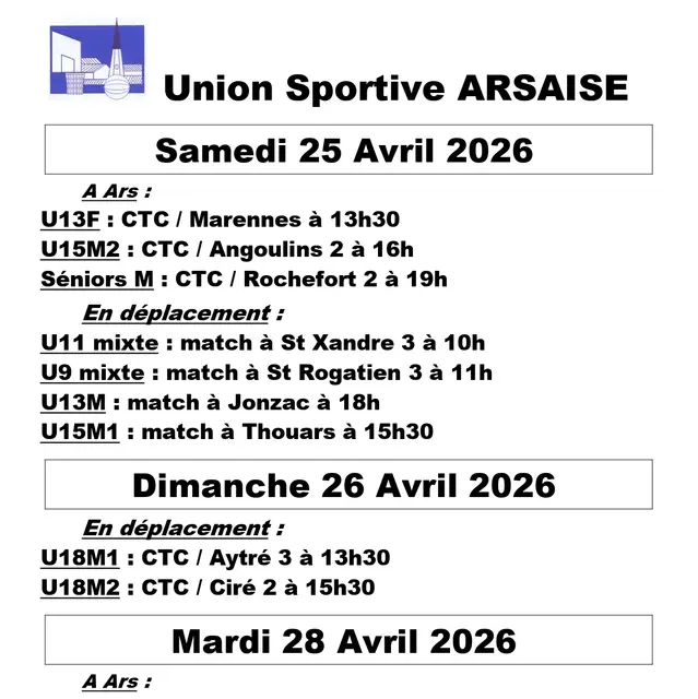 L'Union Sportive Arsaise vous invite à assister aux matchs de basket qui se joueront à la salle des sports de la Prée.
