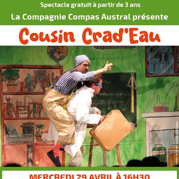Gratuit à partir de 3 ans. La Compagnie Compas Austral présente Cousin Crad'Eau Inscriptions par mail à [email protected]