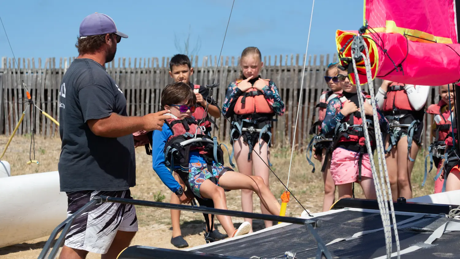 Le tri des déchets, le pédiluve alimenté à l'eau de pluie, les voiles et les coques ne sont jamais rincés à l'eau douce, un bac à foil permet de rincer les foils avec la même eau, les stages sont encadrés pour la plupart sans bateau à moteur, la sensibilisation au respect du milieu naturel fait parti de nos contenus pédagogiques, le matériel est entretenu et réparé régulièrement pour le faire durer...