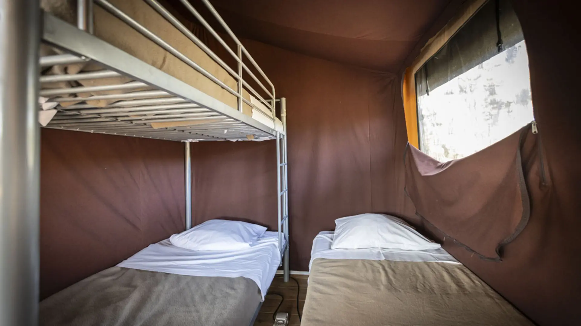 Nuitéetente Classic 4 (sans salle de bain) de 53 à 160 € et tente Sweet (avec salle de bain) de 86 à 217 €