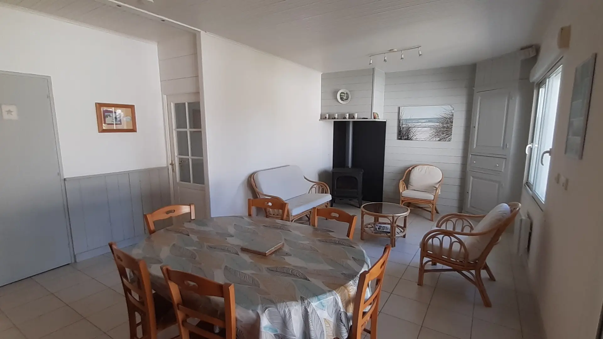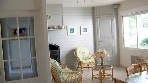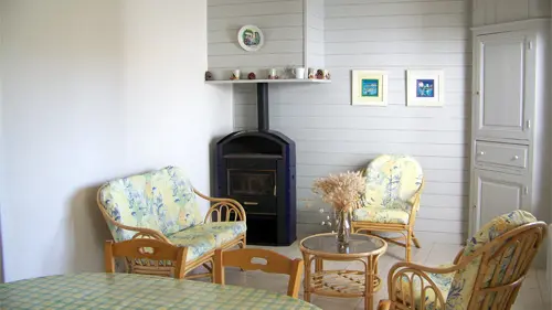 Séjour avec TV, Wi-Fi , poêle à bois. Cuisine équipée d'un lave-vaisselle, micro-onde, four, grille-pain, mixeur, bouilloire, autocuiseur...
