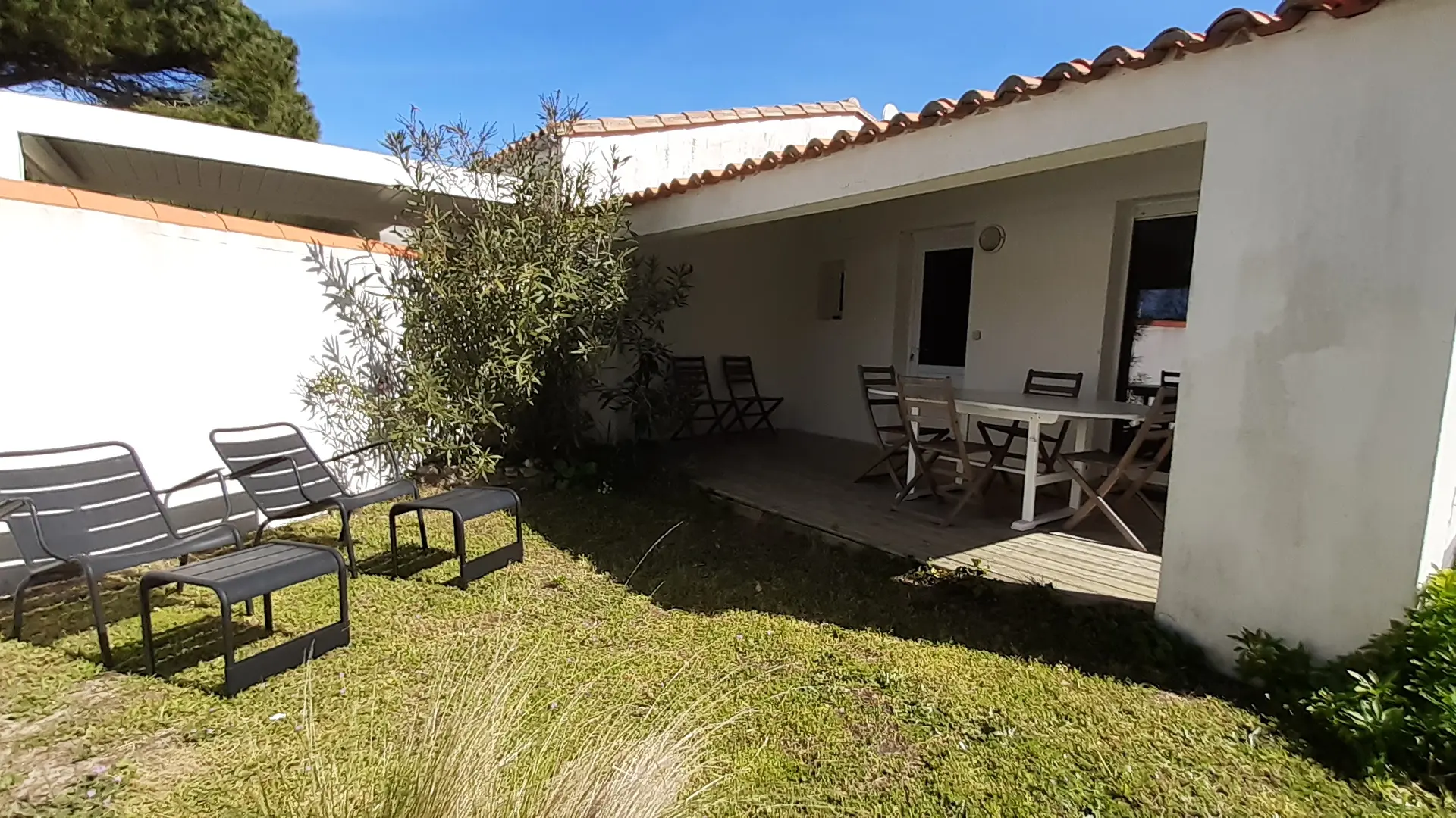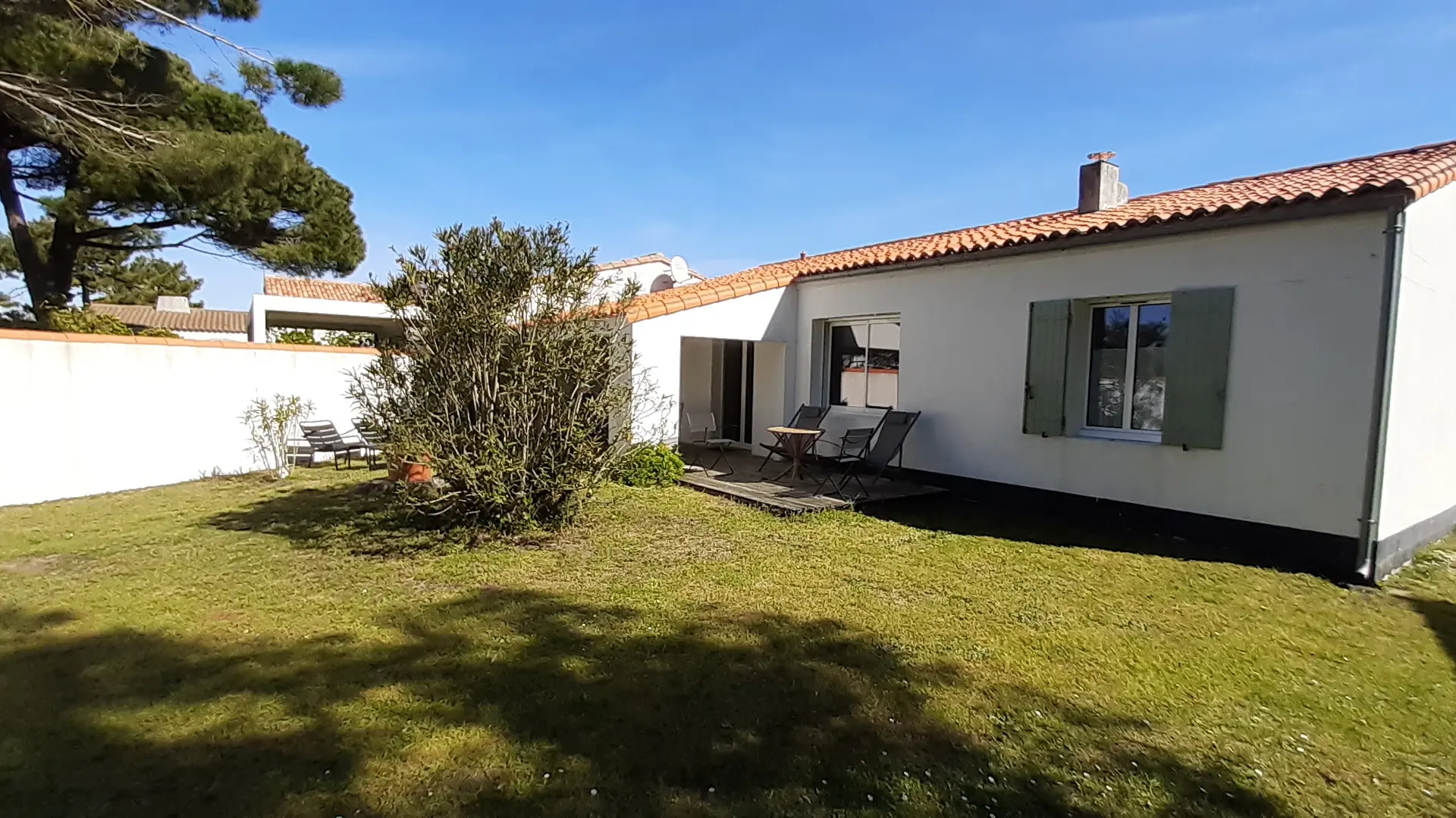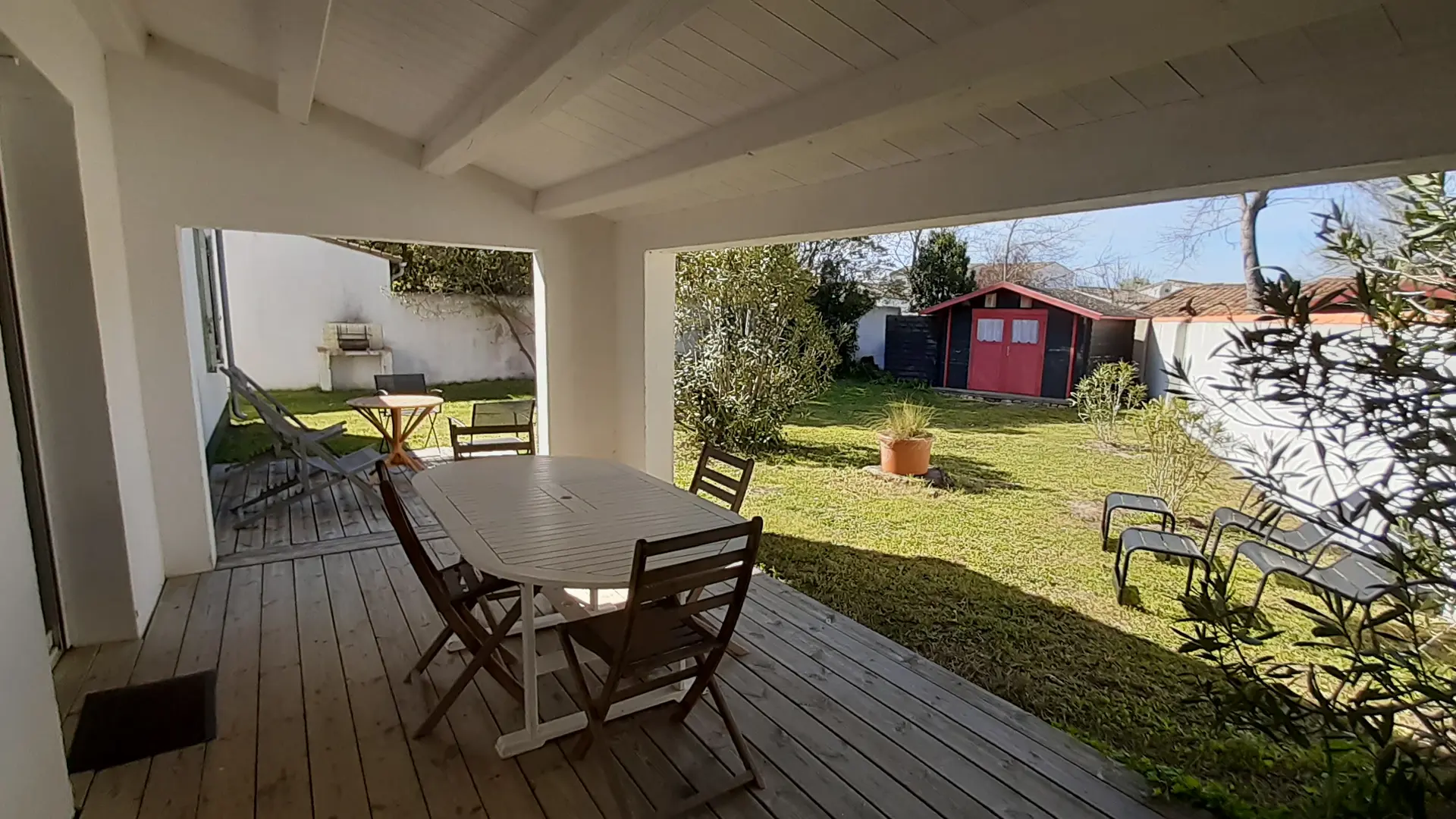 L'extérieur : jardin clos de murs avec salon de jardin, barbecue, terrasse couverte (20 m²), douche extérieure et parking privé.